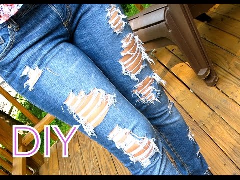 Essa também é uma opção que utiliza a lixa, pois ela realmente estraga o tecido (que é a ideia), mas dessa vez você vai usar somente uma lixa de pé, que é maior, e uma lixa menor de unhas. Não vai precisar da lâmina, somente de um giz marcador para saber exatamente onde serão feitos os rasgos. Veja como fazer essa ideia: