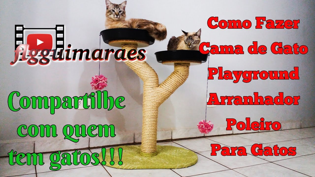 Esse modelo é como um tronco de árvore que os gatos também podem usar como caminha para ficarem pegando um solzinho no maior conforto. Nesse modelo foi usado aglomerado de madeira, canos de PVC, tronco de madeira para forra o interior dos canos e também pratos de vasos grandes, que vão ser as caminhas suspensas. Aprenda o passo a passo nesse vídeo do Fábio Guimarães:
