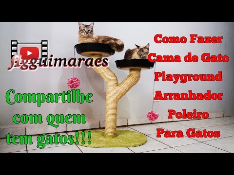 Esse modelo é como um tronco de árvore que os gatos também podem usar como caminha para ficarem pegando um solzinho no maior conforto. Nesse modelo foi usado aglomerado de madeira, canos de PVC, tronco de madeira para forra o interior dos canos e também pratos de vasos grandes, que vão ser as caminhas suspensas. Aprenda o passo a passo nesse vídeo do Fábio Guimarães:
