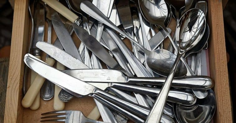 É muito comum que a gaveta dos talheres tenha um organizador. Se você ainda não usa, pode comprar baratinho no supermercado ou em lojas de departamento.