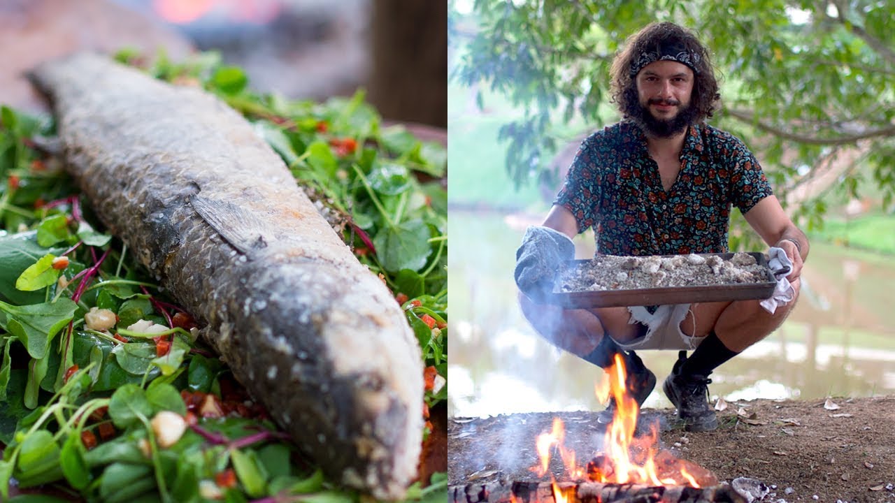 Depois de picar as ervas, misture pimenta-do-reino em grão moída na hora, depois adicione o sal grosso. Essa mistura vai ser o tempero do peixe junto com um pouco de água para dar uma liga e ficar mais fácil de passar sobre o peixe. É bem rápido para assar. Acompanhe o preparo no vídeo e veja também uma sugestão de acompanhamento leve.