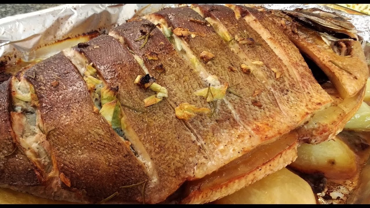 Essa opção de tempero é para o peixe pacu, e não tem segredo, pois você pode usar apenas os temperinhos simples que tiver na cozinha. A dica é assar o peixe numa cama de batatas.