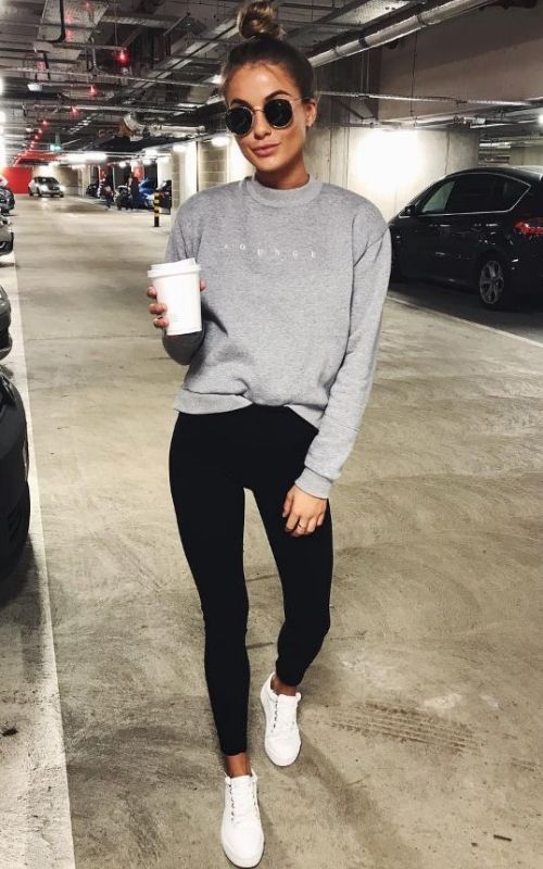 Com blusas justinhas a legging também vai bem, podendo usar com qualquer tipo de calçado. Se não quiser delinear tanto o corpo o truque á amarrar um casaco na cintura, se o look for casual ou esportivo.