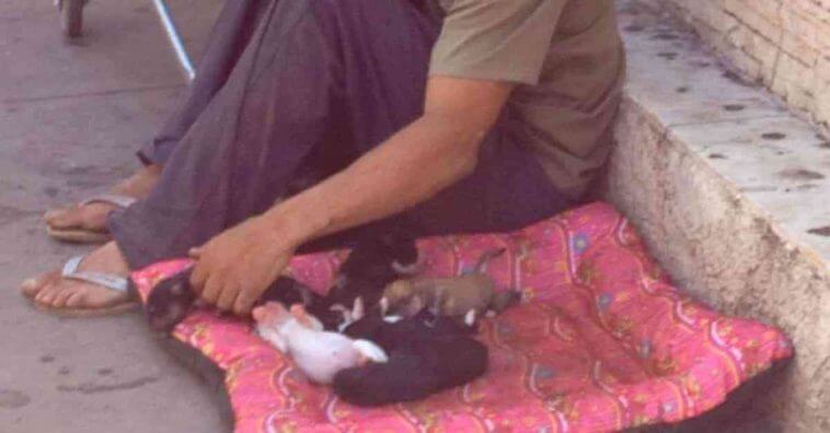 Emerson, um morador de rua de S. Paulo, viu a sua companheira canina, Julie, dar luz a uma ninhada de 7 crias.