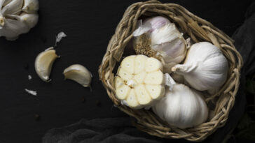 - Alho cortado ao meio: 3 dentes;