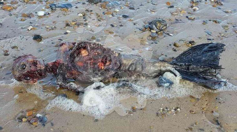 Corpo de sereia em decomposição foi fotografado e filmado na praia de Great Yarmouth, na Inglaterra. Quem registrou a cena foi Paul Jones, que a colocou no facebook e até esse momento, já teve mais de 20 mil compartilhamentos…