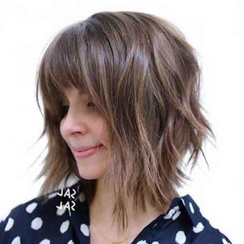 Existem diversas formas de fazer esse corte, e essa é uma ideia um pouco mais ousada para quem gosta de pontas mais repicadas e uma franja mais volumosa. É bom para cabelos ondulados.