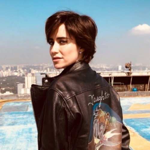 A franjinha reta pode parecer coisa de cabelo comportado, mas é só virar de lado para perceber o contraste. Claro, a cor também ajuda a expressar uma personalidade cheia de estilo.