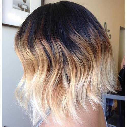 O famoso corte bob, ou long bob, é esse com a parte de trás mais curta e a frente com pontas. Mas, nesse bob invertido, as pontas são feitas até um pouco antes da franja, que é levemente mais curta. O efeito da balayage ajuda a destacar o corte.