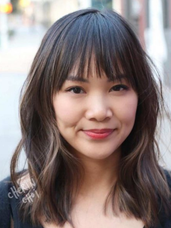 Mesmo um pouco abaixo dos ombros, essa opção entre os cortes de cabelo para rosto redondo ainda continua médio. Fazê-lo repicado deixa o rosto mais alongado e com leveza, bem como também deixa os fios com mais balanço, especialmente de forem lisos e você quiser um pouco mais de volume. A franja lateral alongada também contribui para afinar o rosto.