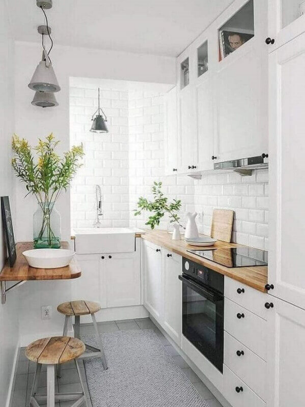 Quando uma cozinha é muito pequena, a melhor solução para aproveitar bem o espaço é fazer uma cozinha planejada. Pode ser com móveis modulados, que vêm semiprontos, ou de marcenaria, feitos a partir do zero e projetados por um designer de interiores. É um investimento mais alto, porém, torna a rotina mais prática e funcional. Inspire-se com esses lindos modelos de cozinhas muito pequenas planejadas.
