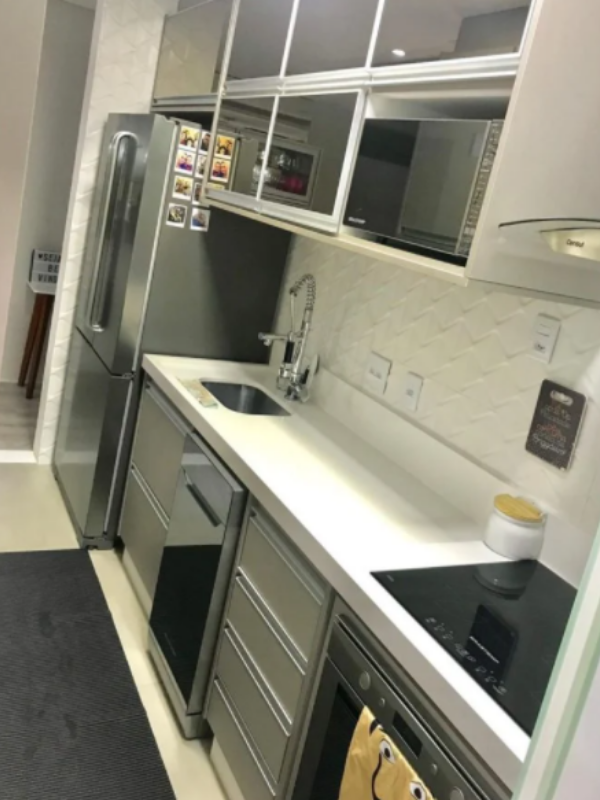 19. Eletros de inox e portas espelhadas para um visual moderno