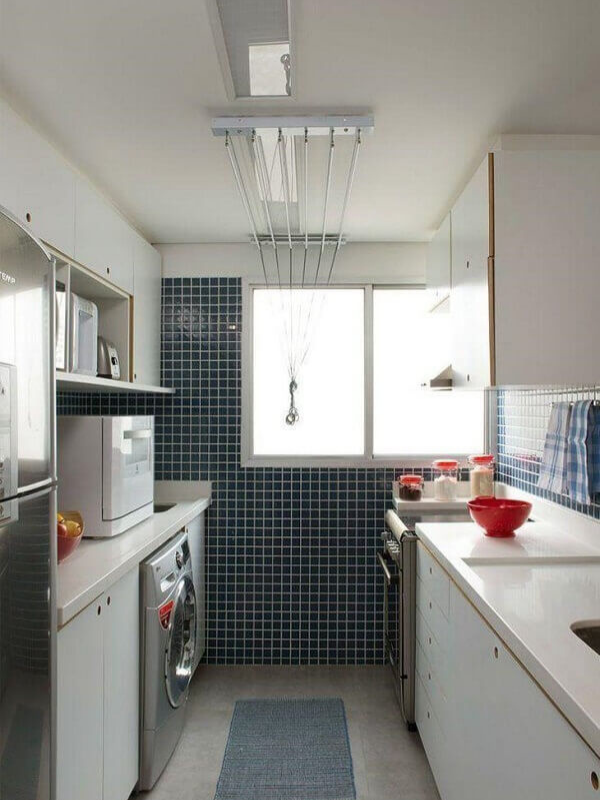 20. Cozinha e lavanderia em um só lugar, bem organizado
