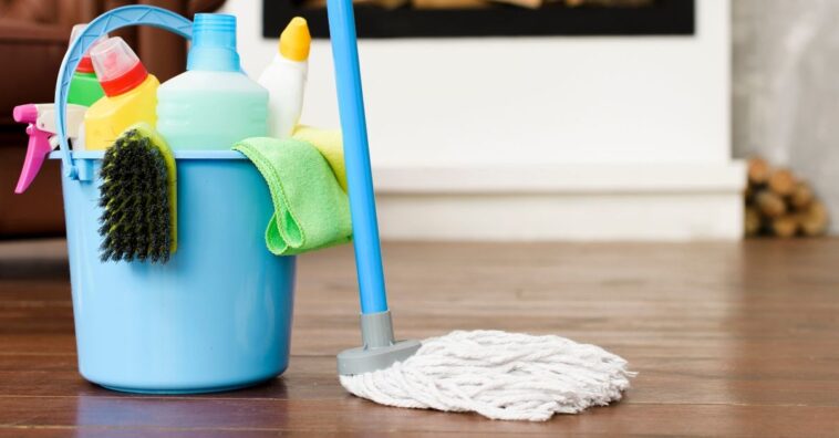 Depois de varrer é bom passar um pano pela casa toda com uma solução desinfetante. Assim, irá matar germes e bactérias espalhados pelos ambientes. Essa solução deve ser feita com 1 litro de água misturado a 1 colher de sopa de detergente e 1 colher de sopa de bicarbonato de sódio. Na hora de enxaguar o pano, faça isso em outro balde ou no tanque. Faça esse enxague sempre que mudar de ambiente.