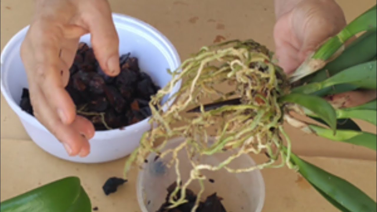 Presa, a orquídea fará o enraizamento mais rápido. Em um primeiro momento, é melhor deixar o substrato longe das raízes para que a planta não se afogue novamente. Só faça a rega com borrifador.