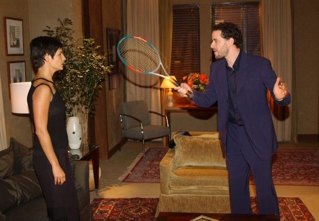 A novela de época O Cravo e a Rosa, que foi ao ar no ano 2000, arrancou boas risadas dos telespectadores, especialmente pelas cenas engraçadas de Catarina (Adriana Esteves) com seu noivo Petruchio (Eduardo Moscovis). Mas, quase que Eduardo não aceitou o papel por se parecer tão rude e machista quanto o personagem Carlão, em Pecado Capital, que ele tinha acabado de fazer. Nem dá para imaginar outro ator nesse personagem!