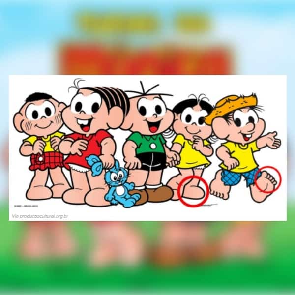 2. Mesmo descalços, a Mônica, o Cascão e Magali não têm dedos dos pés, mas o Chico Bento sim