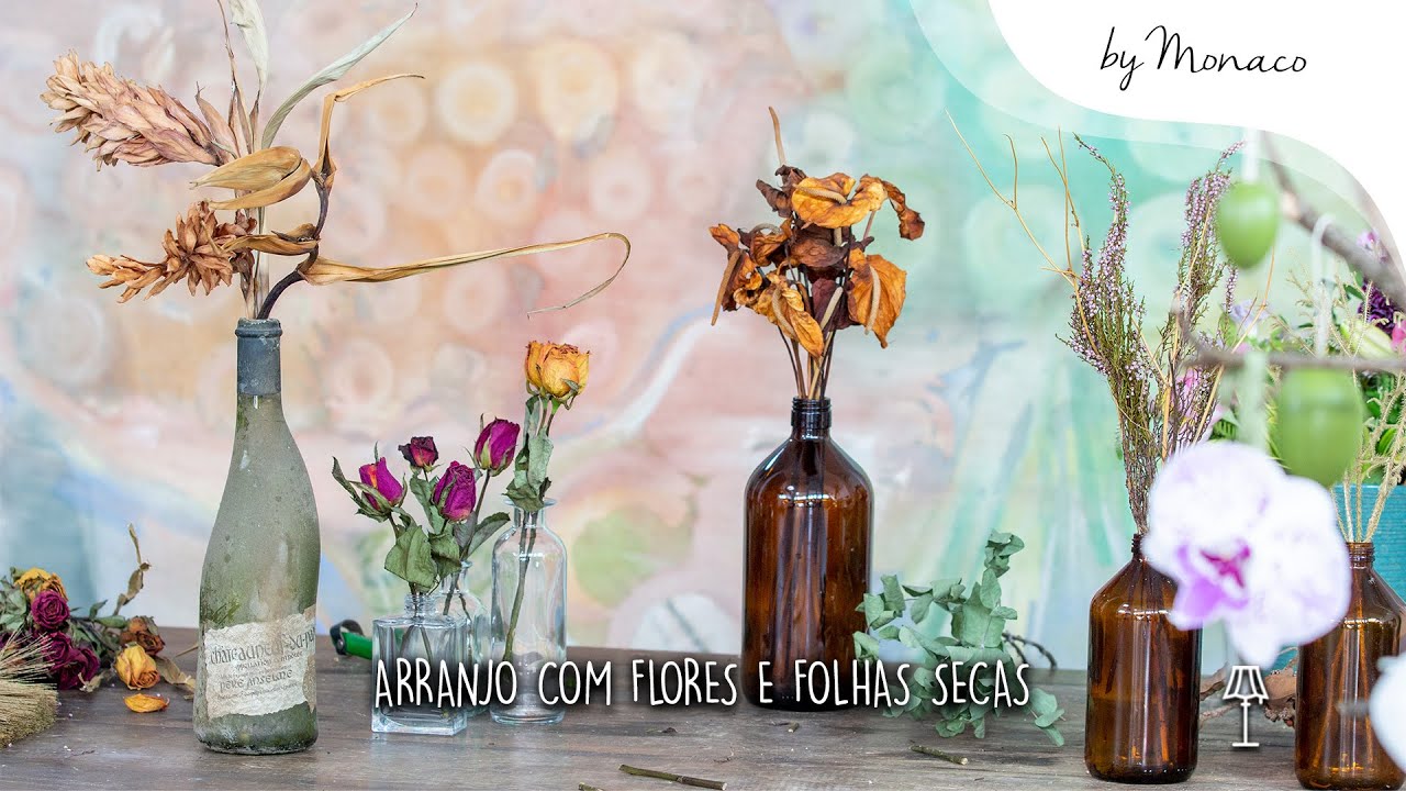 Nem todo tipo de flor e folha vai desidratar de um jeito bonito. Algumas flores perdem as pétalas e não dá certo. Então, a dica é você ir pegando todas que encontrar e fazer o teste, deixando-as secar num canto ventilado da sua casa. Depois é só reunir vasinhos e montar os seus arranjos. Veja algumas ideias simples e lindas nesse vídeo abaixo: