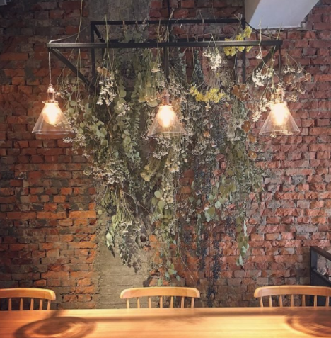 Arranjos de folhas secas ficam perfeitos decorando uma parede de tijolinhos