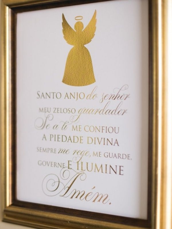 Escolha as orações que sua família tem o costume de rezar na rotina, sem esquecer da oração do Santo Anjo, especial para o seu pequeno, e mande imprimir para emoldurar e decorar as paredes e mesas.