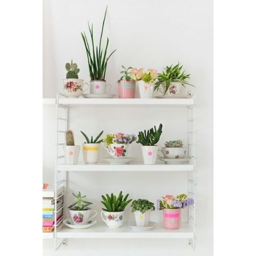 12. Vitrine de suculentas nas xícaras, que mimo!