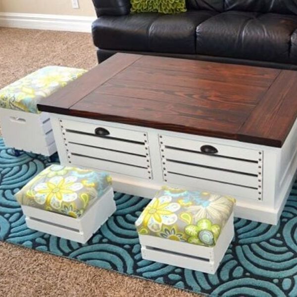 Você pode usar os caixotes na cor original mesmo, se quiser uma decoração mais rústica. Mas se for utilizar caixotes usados, a dica é lixar bem a peça, depois pintar e envernizar. Além das opções de madeira tem também os caixotes de plástico. Pode fixar pés, rodinhas ou agrupar mais de um caixote para criar móveis maiores, como mesa de centro e sofá. Ideias não faltam para se inspirar, confira: