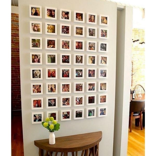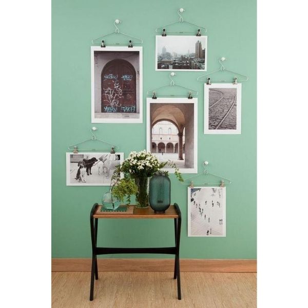 Procure deixar um espaçamento semelhante entre todos os quadros. Não precisa ser uma medida exata, mas também não muito variada. A ideia é que a composição como um todo fique mais harmoniosa. Se não tiver uma certa simetria, vai parecer uma bagunça.