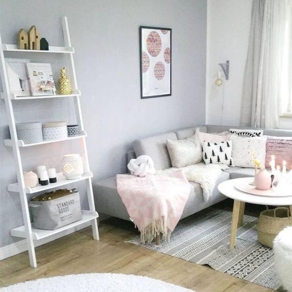 O quadro de tamanho grande foi complementado com as prateleiras e a escada