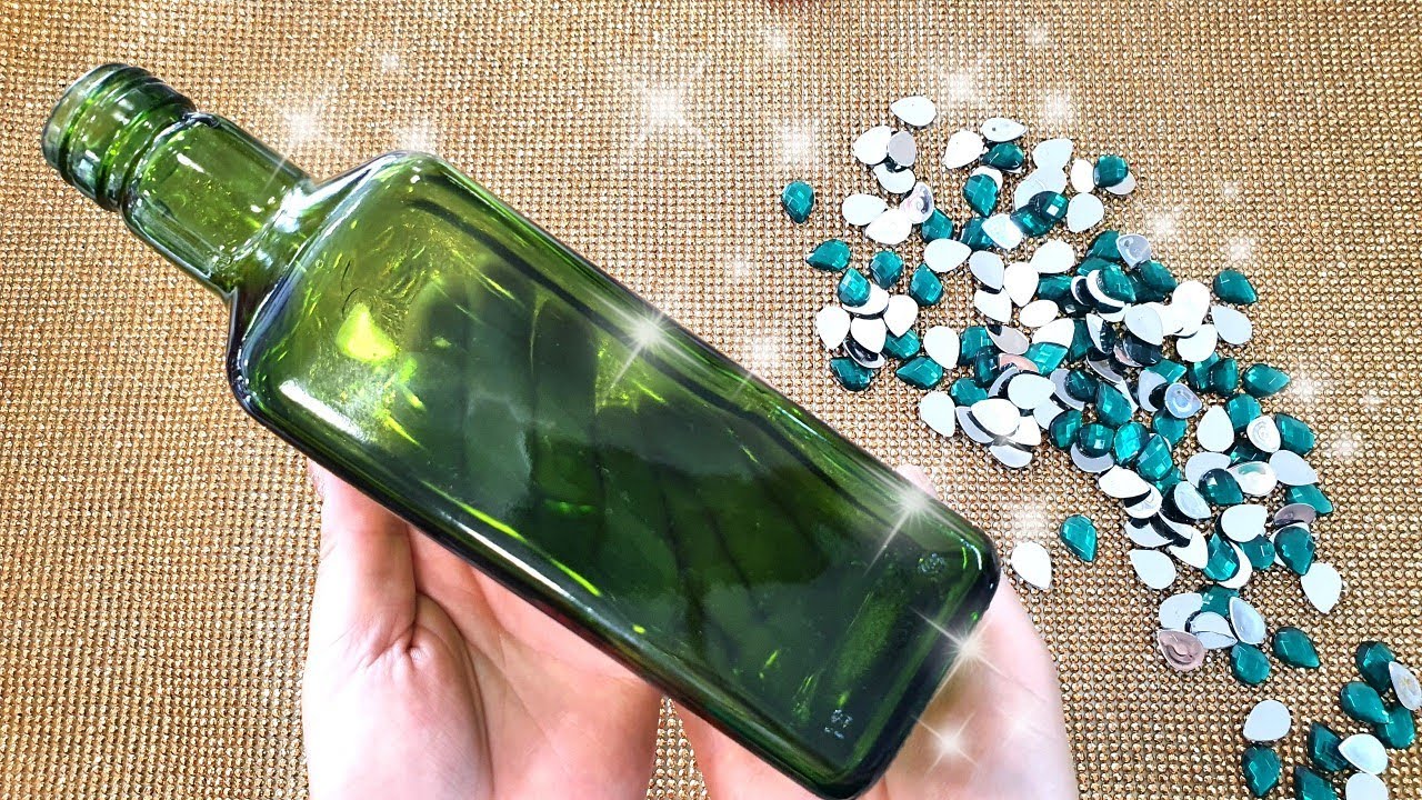 Colar arroz cru na garrafa e fazer uma pintura por cima deixa um efeito bem interessante. Para esse passo a passo você também vai usar uma garrafa transparente, tinta spray, cola para vidro e pecinhas decorativas.