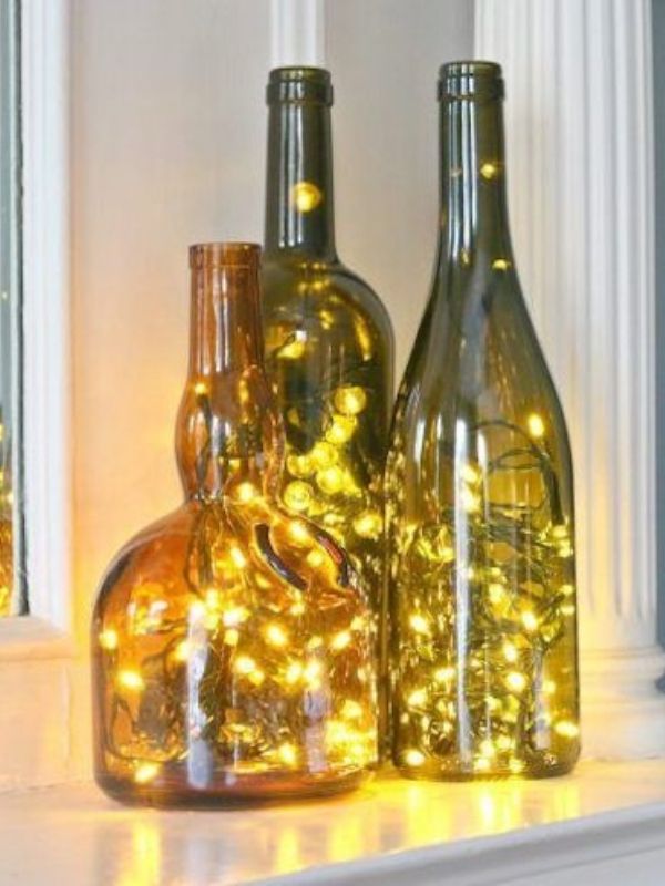 1. Garrafas âmbar vazias com luzes dentro