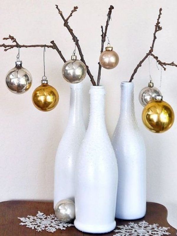 4. Garrafas pintadas de branco com gravetos decorados