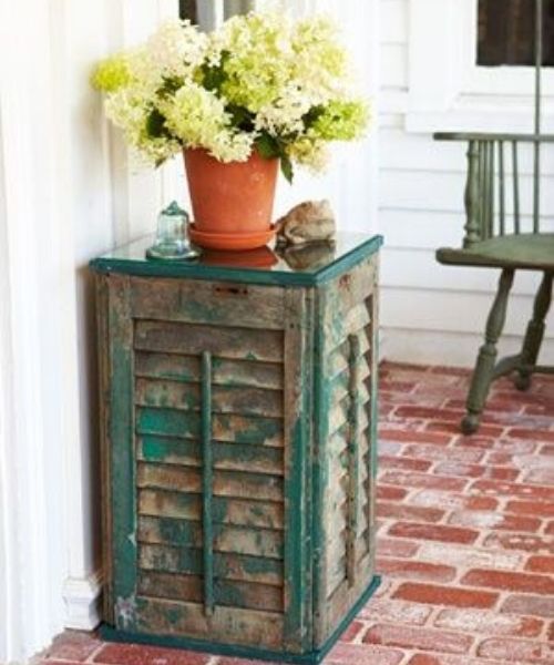 Outra ideia linda com venezianas é fazer mesinhas decorativas que servem para qualquer cômodo da casa. Em cada um dos lados vai uma folha de janela. Se quiser, também pode aproveitar a parte interna, fazendo uma portinha, para guardar sapatos ou outros itens do dia a dia.