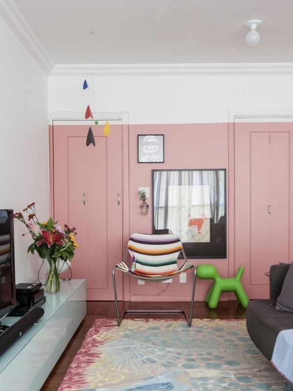 14. O rosa, o verde, as flores, o colorido da poltrona, tudo alegre e em harmonia