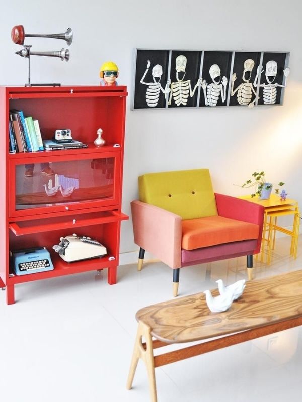 4. Mesmo com móveis antigos e escuros, os detalhes coloridos trazem alegria e claridade