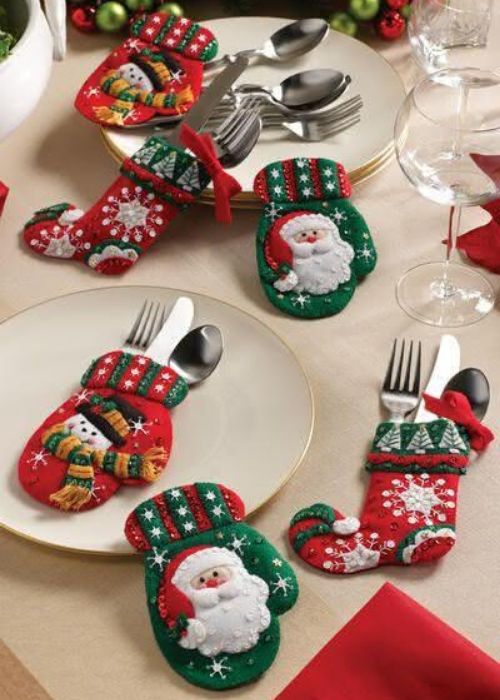 Mesmo que no Brasil o Natal aconteça no verão, a cultura norte-americana faz todo mundo utilizar itens de inverno para decorar a casa. Então, aproveite o embalo e decore a mesa de Natal com luvinhas e meias temáticas.