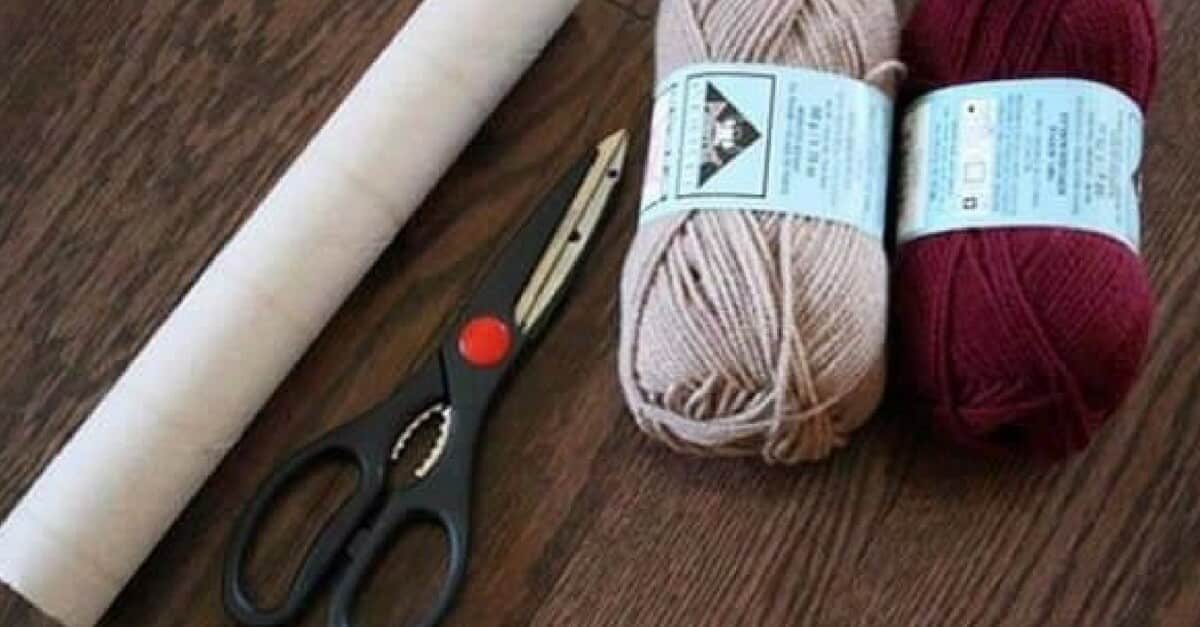 1. Encape o rolo com o papel vermelho e dobre um dos lados