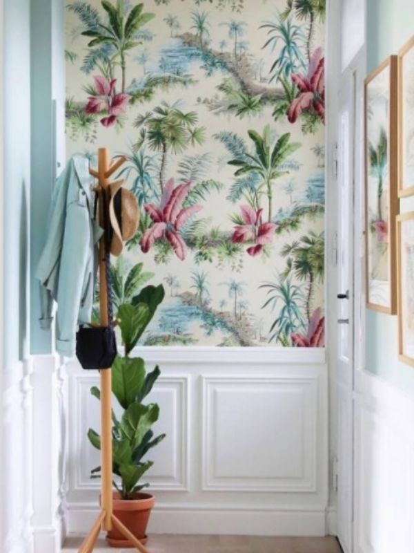 Mais uma vez a ideia do papel de parede vem a calhar. Não precisa colocar na parede ao longo do corredor. Pode colocar na parede de fundo. Se quiser um papel bem estampado e colorido, a base das paredes deve ser clarinha para equilibrar.