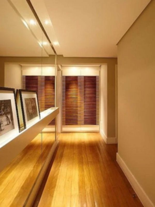 Se o corredor foi muito pequeno ou com cores que escurecem um pouco, a dica é apostar em grandes espelhos para trazer a sensação de amplitude e refletir a luz.