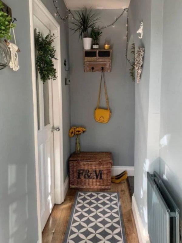 As ideias com plantas ficam sempre lindas. Apenas precisa escolher as plantas com tamanho certo para não bloquear a passagem. Se possível, que fiquem penduradas nas portas e paredes. O cinza-claro com branco ajuda a clarear o ambiente.