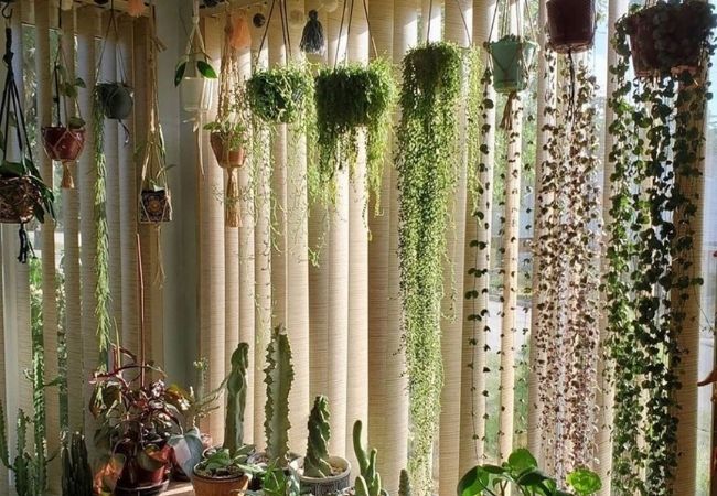 Também fica perfeita com plantas pendentes, principalmente as que tem folhagem menor e mais numerosa. Porém, elas têm que ser mais resistente ao vento, pois estarão na janela, então nada de colocar samambaia, ok?