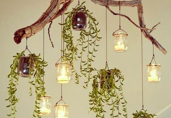 Para trazer a natureza para dentro de casa, aposte nos galhos naturais como suporte. Nele, coloque seus vasinhos e, quem sabe, algumas velas (podem ser de led) para compor o visual.
