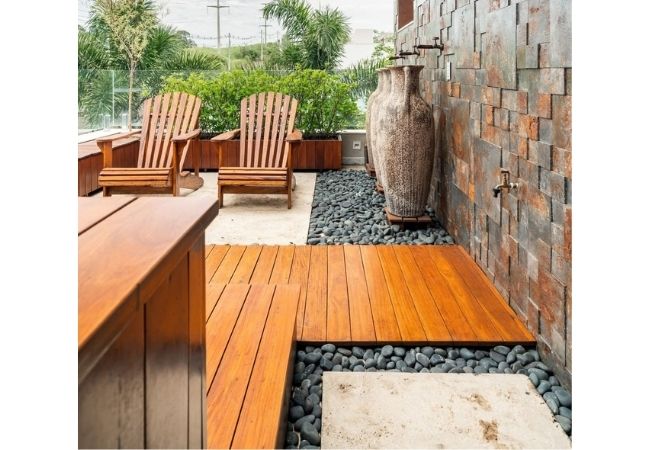Veja como um deck de madeira transforma a sua área externa, mesmo com a parede no reboco: