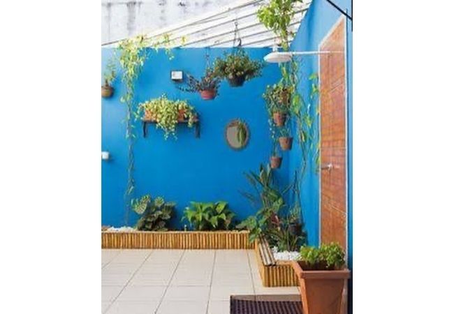 15. Pintura, plantas, estrutura de madeira para a ducha, faça o melhor com o que você já tem