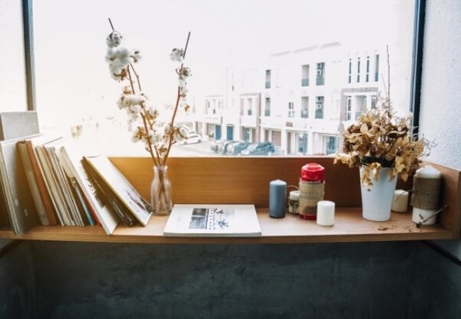 Outra forma interessante de colocar flores nas janelas, é usar nichos abertos ou prateleiras como suporte. Além de dar um charme a mais no interior, ajuda a proteger quem passa por baixo.