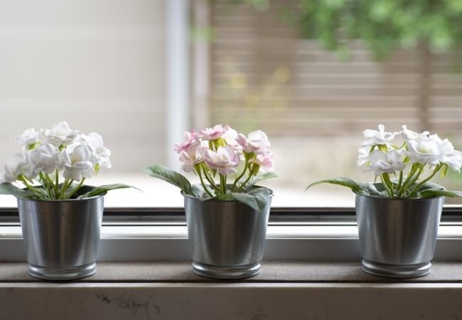 Floreiras de plástico – que são mais leves – podem ser colocadas na janela, bem fixadas para não ter acidentes. Elas devem ficar presas nas grades com materiais que não se desgastem com o tempo, como por exemplo arames inoxidáveis.