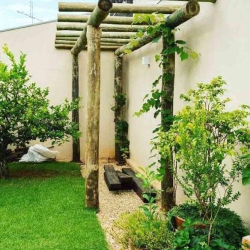 9. Uma pérgola de madeira vira apoio para plantas trepadeiras que vão fazer sombra quando se alastrarem