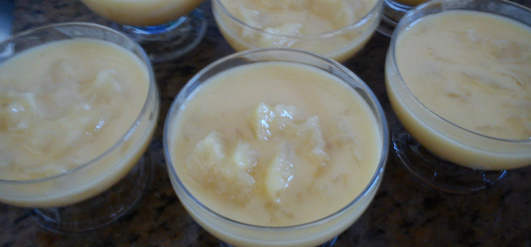 - Em um refratário, disponha o abacaxi e, por cima, o creme com Maizena, já frio;