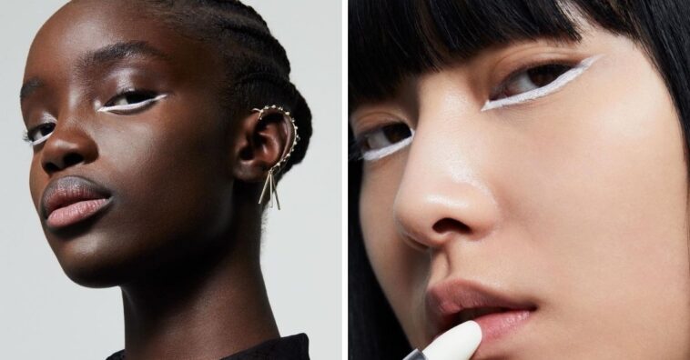Pintar uma linha branca nos olhos não é novidade no mundo da maquiagem. Só que, antes, era mais usado na parte inferior e feita com lápis branco. Agora, a tendência é o delineador branco para usar também na parte superior e deixar o visual mais leve, versátil e iluminado.