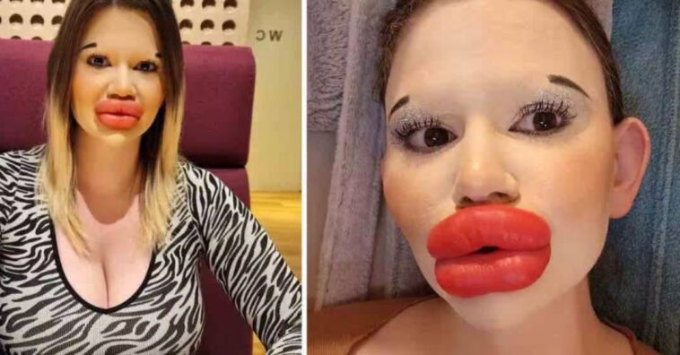 Andrea Emilova Ivanova é uma mulher da Bulgária que decidiu modificar sua aparência com um aumento de lábios fora do comum.