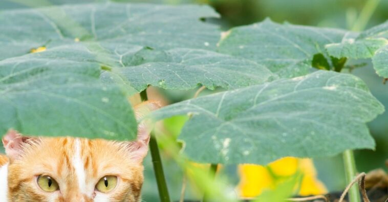 Mesmo com o círculo vermelho, esse danadinho continua camuflado. Mas olhe bem, é um gatinho sim!